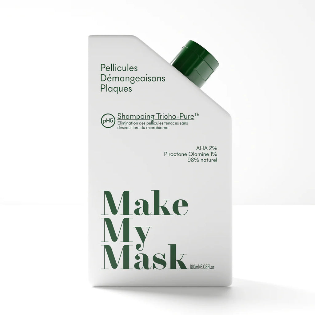 Une approche dermatologique et naturelle, issue de la trichologie : le Shampoing Anti-Pelliculaire pH5 est la première étape essentielle du Protocole Anti-Pellicules & Dermatite Séborrhéique signé MakeMyMask.